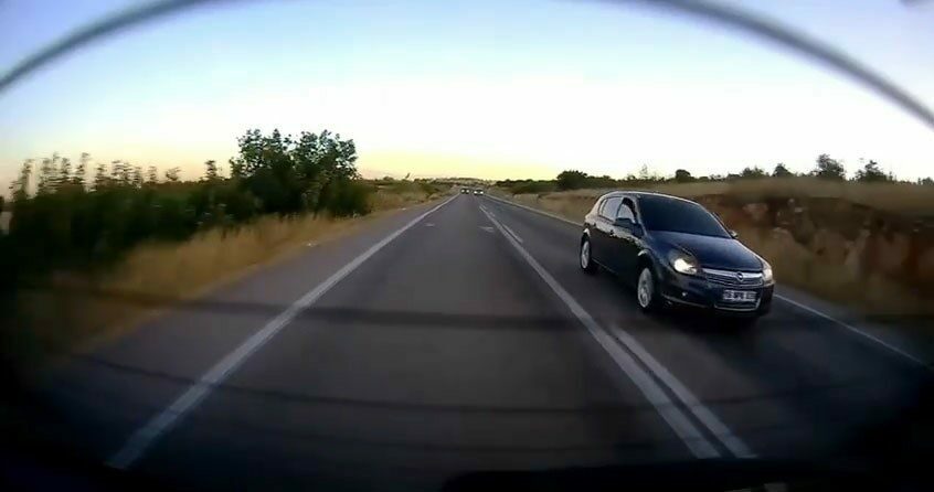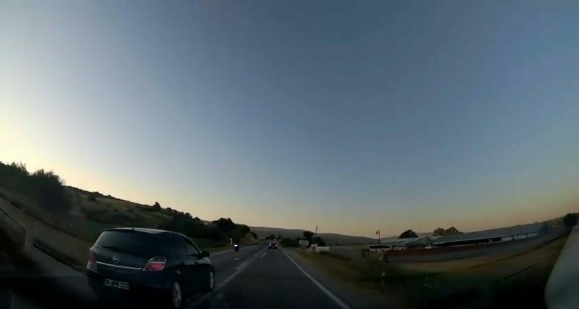 Olay, akşam saatlerinde Karacabey ilçesi Yeniköy-Boğaz yolu üzerinde meydana geldi. Tek şeritli yolda önündeki otomobili sollayan Opel marka otomobilin sürücüsü, hatalı sollama sonucu karşı yönden gelen motosikletle burun buruna geldi. Araç motosikleti teğet geçerken, o anlar otomobilin kamerasına saniye saniye yansıdı.