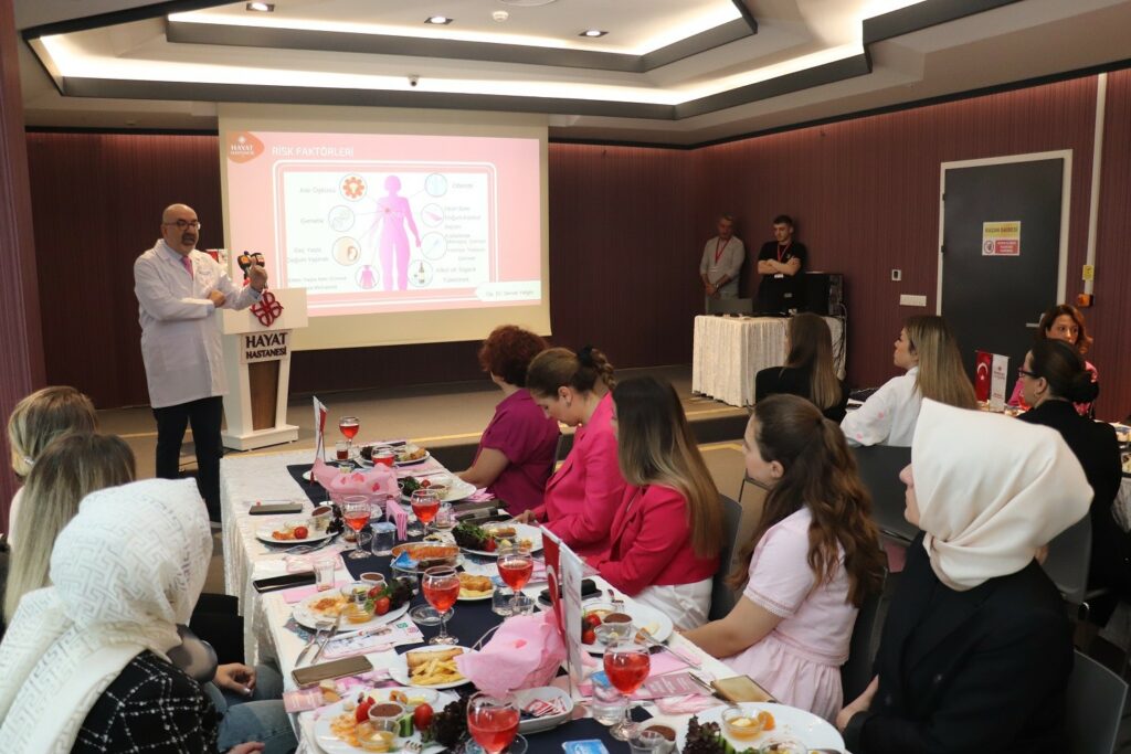 Özel Hayat Hastanesi’nde yapılan organizasyonda Genel Cerrahi Uzmanı Op. Dr. Servet Yetgin, meme kanserinde erken teşhisin önemi ve etkilerine yönelik bilgilerini paylaştı. Programın açılış konuşmasını yapan Özel Hayat Hastanesi Yönetim Kurulu Başkan Yardımcısı ve Başhekimi Uzm. Dr. Fatih Özkul, sadece sağlık hizmeti veren bir kuruluş olmadıklarını aynı zamanda toplumsal sorumluluklarının da bulunduğunu belirterek meme kanseri gibi toplumu ilgilendiren konularda farkındalık oluşturmaya çalıştıklarını söyledi.