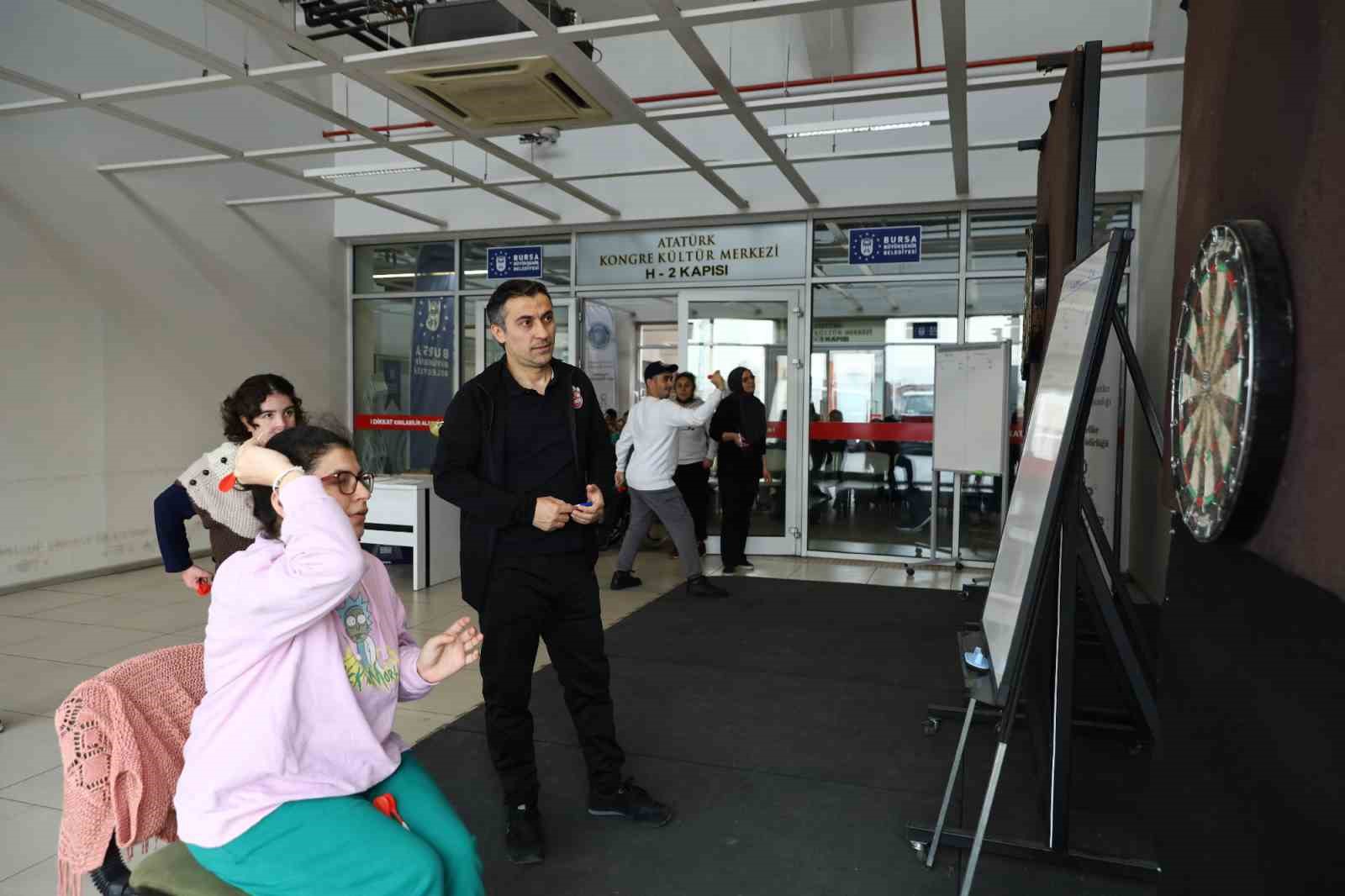 Bursa Büyükşehir Belediyesi’nin Türkiye Bocce, Bowling ve Dart Federasyonu işbirliğiyle düzenlediği ‘Engelsiz Dart Turnuvası’nda özel ihtiyaç sahibi bireyler hem yarıştı hem de eğlenceli vakit geçirdi.