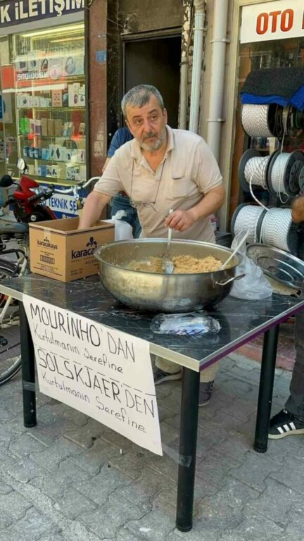 Bursa’nın İznik ilçesinde Fenerbahçeli ve Beşiktaşlı taraftarlar, birlik oldu. Ole Gunnar Solskjr ve José Mourinho için helva yapıp dağıttılar.