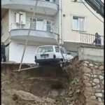 Kent merkezi ve ilçelerde etkili olan yağış nedeniyle Gemlik ilçesine bağlı Balıkpazarı Yeni Mahalle’de, bir inşaat firmasının yaptığı istinat duvarının çökmesine neden oldu. Çöken duvarın 2 apartmana gelmesiyle büyük bir panik yaşayan mahalle sakinleri hızla evlerini boşalttı. Meydana gelen olayda 2 kişi yaralanırken, bazı otomobiller ise uçurumun eşiğinde kaldı. İhbar üzerine olay yerine itfaiye, AFAD, sağlık ve çok sayıda polis ekibi sevk edilirken, heyelan sonrası araçların kurtarılma anı ise kameraya yansıdı.