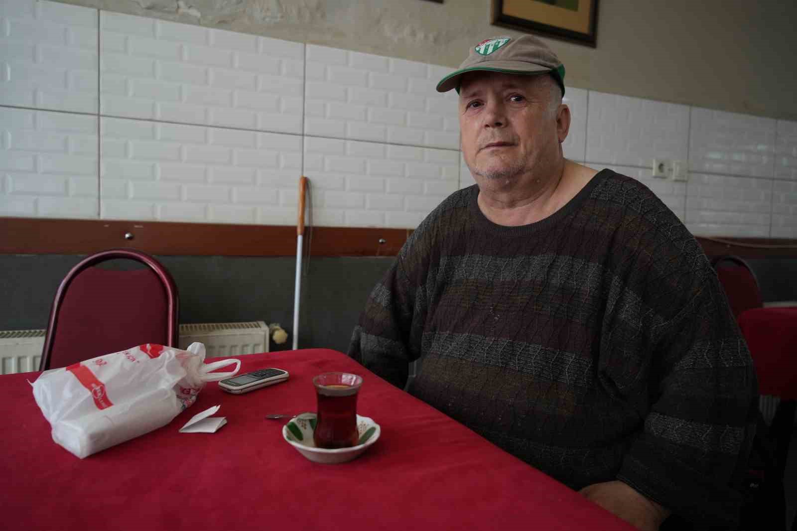 Bursa’da kuyumculuk yapan Özcan Okur, 17 yıl önce iflas etmesinin ardından evsiz kaldı. Ailesi tarafından terk edilen Okur, sağlık sorunları nedeniyle görme kabiliyetini de kaybetti. Okur, şimdi arkadaşının kıraathanedesinde konaklıyor