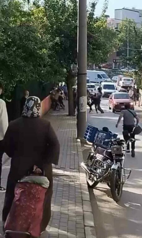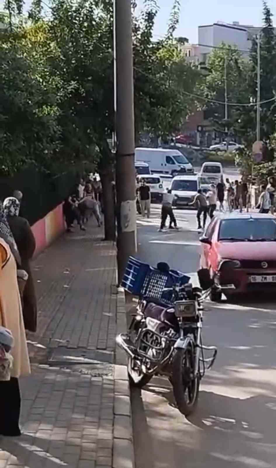 Olay, merkez Yıldırım ilçesi Teleferik Mahallesi’nde meydana geldi. İddiaya göre aralarında alacak verecek meselesi olan iki gurup arasında sözlü tartışma çıktı. Öfkeli taraflar bir anda kavgaya tutuşunca tekmeler, yumruklarda havada uçuştu. Çevredekiler durumu polise bildirirken, bazı vatandaşlar olaya müdahale etmek istedi. Kavga anı kameraya anbean yansırken, görüntüler meydan muharebesini aratmadı.