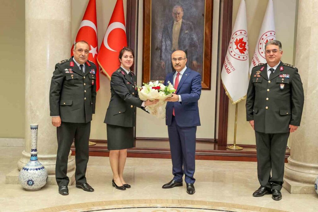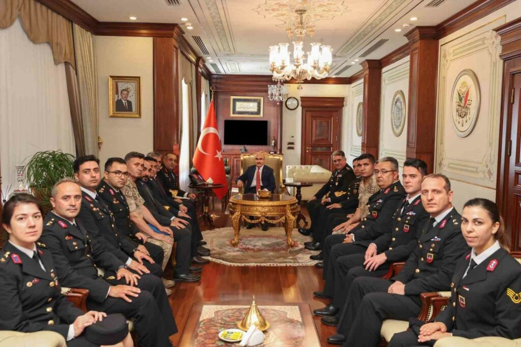 Bursa’da İl Jandarma Komutanı Tekin Aktemur ve beraberindeki heyet Jandarma Teşkilatının 185.yılı nedeniyle Bursa Valisi Mahmut Demirtaş’ı ziyaret etti.