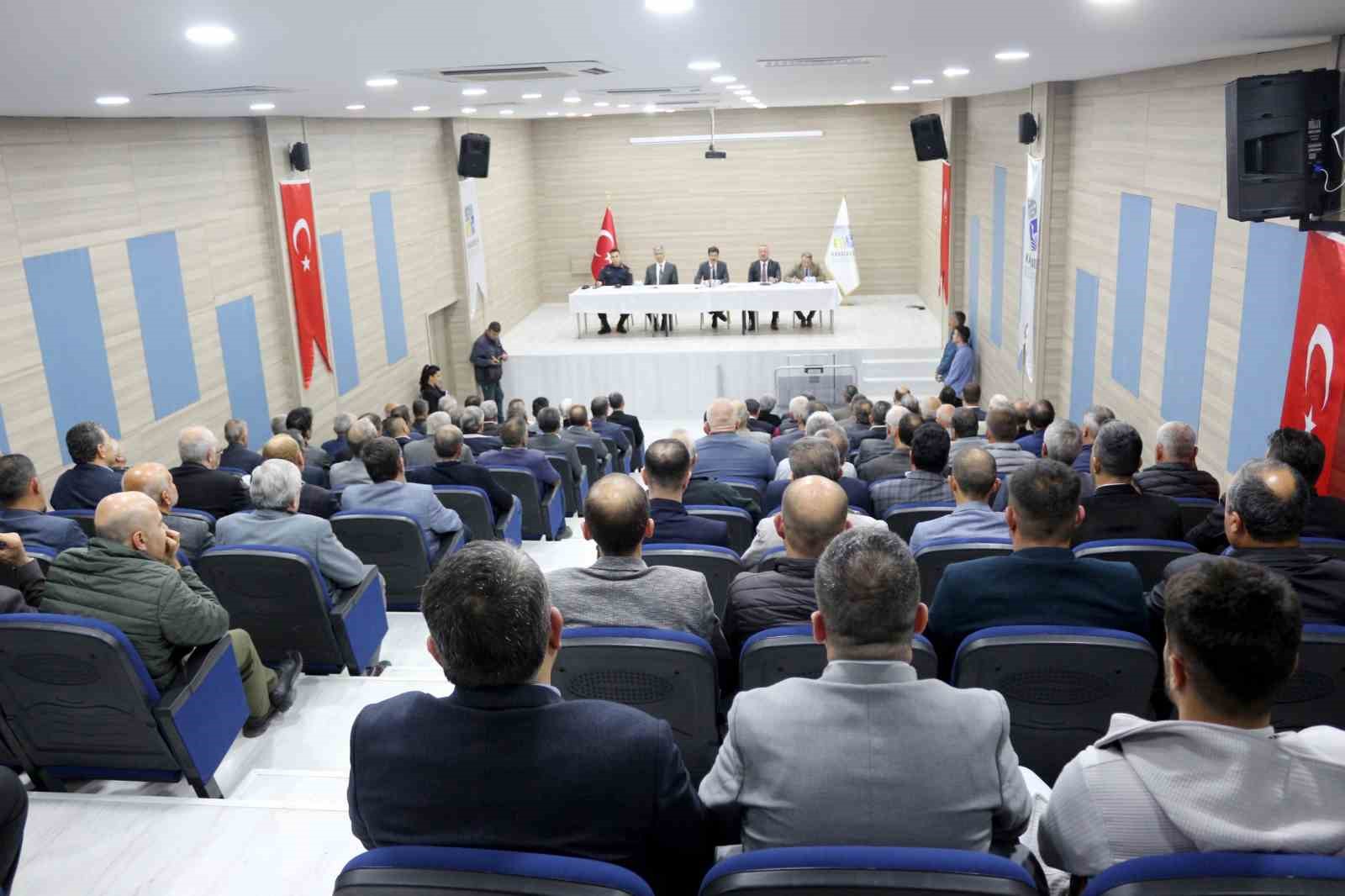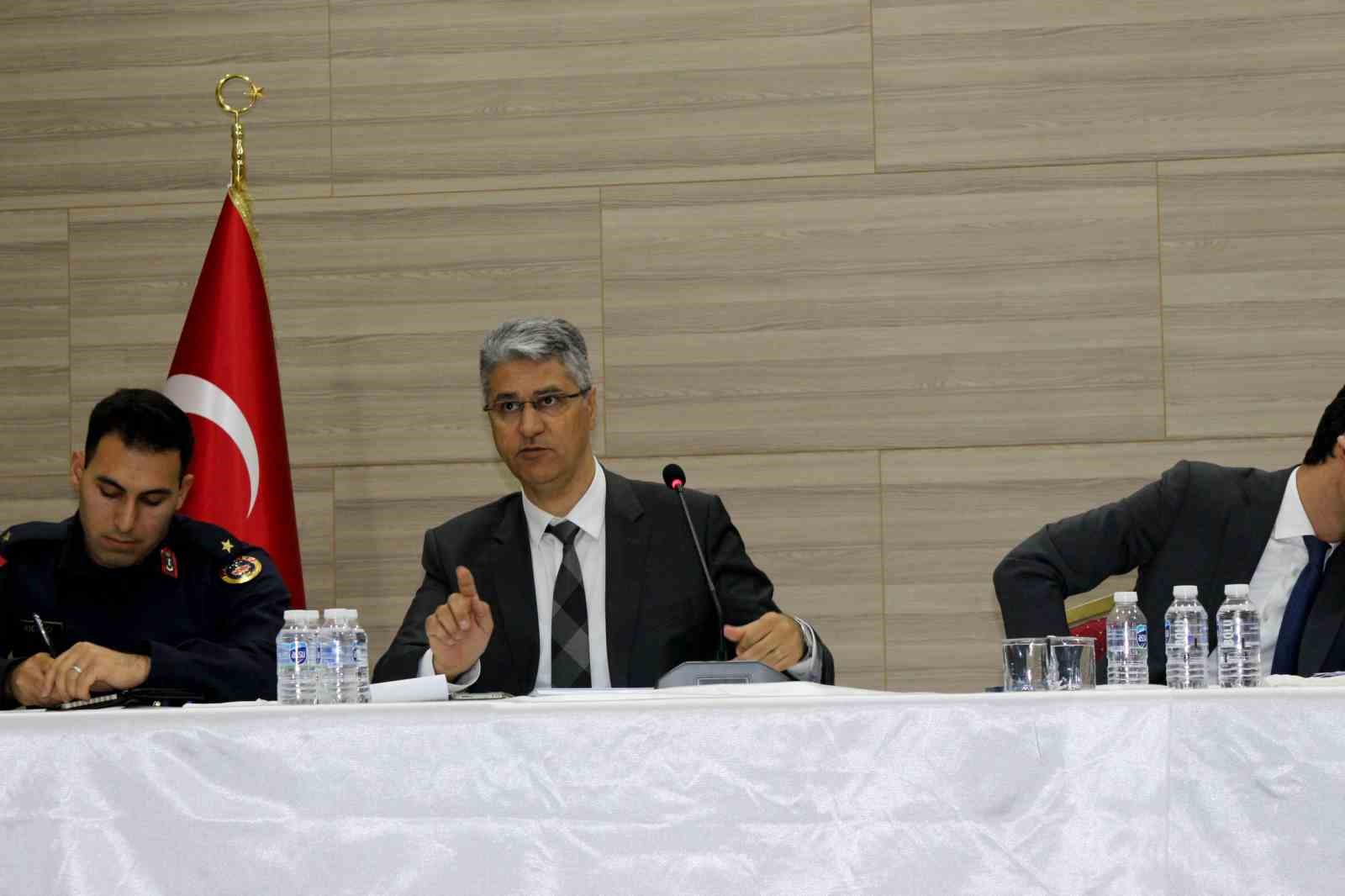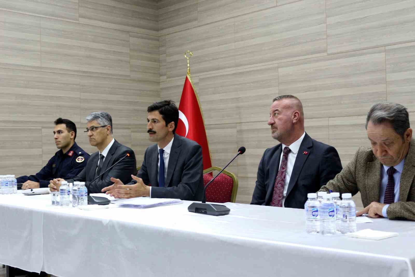 100. Yıl Sadık Yılmaz İlçe Halk Kütüphanesi’nde düzenlenen toplantıya Kaymakam Hakan Kafkas’ın yanı sıra, Belediye Başkanı Fatih Karabatı, İlçe Emniyet Müdürü Ümit Şahin, İlçe Jandarma Komutanı Jandarma Teğmen Huzeyfe Bıçakcı, Kaymakamlık Yazı İşleri Müdürü Rahmi Çanakçı, daire amirleri, belediye yetkilileri ile muhtarlar katıldı. Toplantıya 85 mahalleden yalnızca 9 muhtarın katılmadıkları öğrenildi.