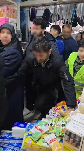 İhtiyacı olup olmadığını sorgulamadan ürünleri kucaklayan vatandaşlar, rafları kısa sürede boşalttı. Kucağında çocuğu ile sıradan içeri giren vatandaş düşme tehlikesi atlatınca, ’yaptığınız yanlış’ diye tepki gösterdi.