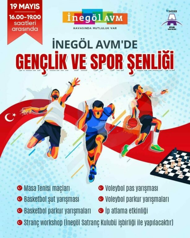 Fiba CP’nin yatırımcısı ve yöneticisi olduğu İnegöl AVM, 19 Mayıs Atatürk’ü Anma, Gençlik ve Spor Bayramı’nı gençlerin enerjisini yansıtan bir programla kutluyor. Bayram coşkusunu sanat ve sporla bir araya getiren bu özel gün, gençlere hem ilham verecek hem de eğlenceli anılar bırakacak.