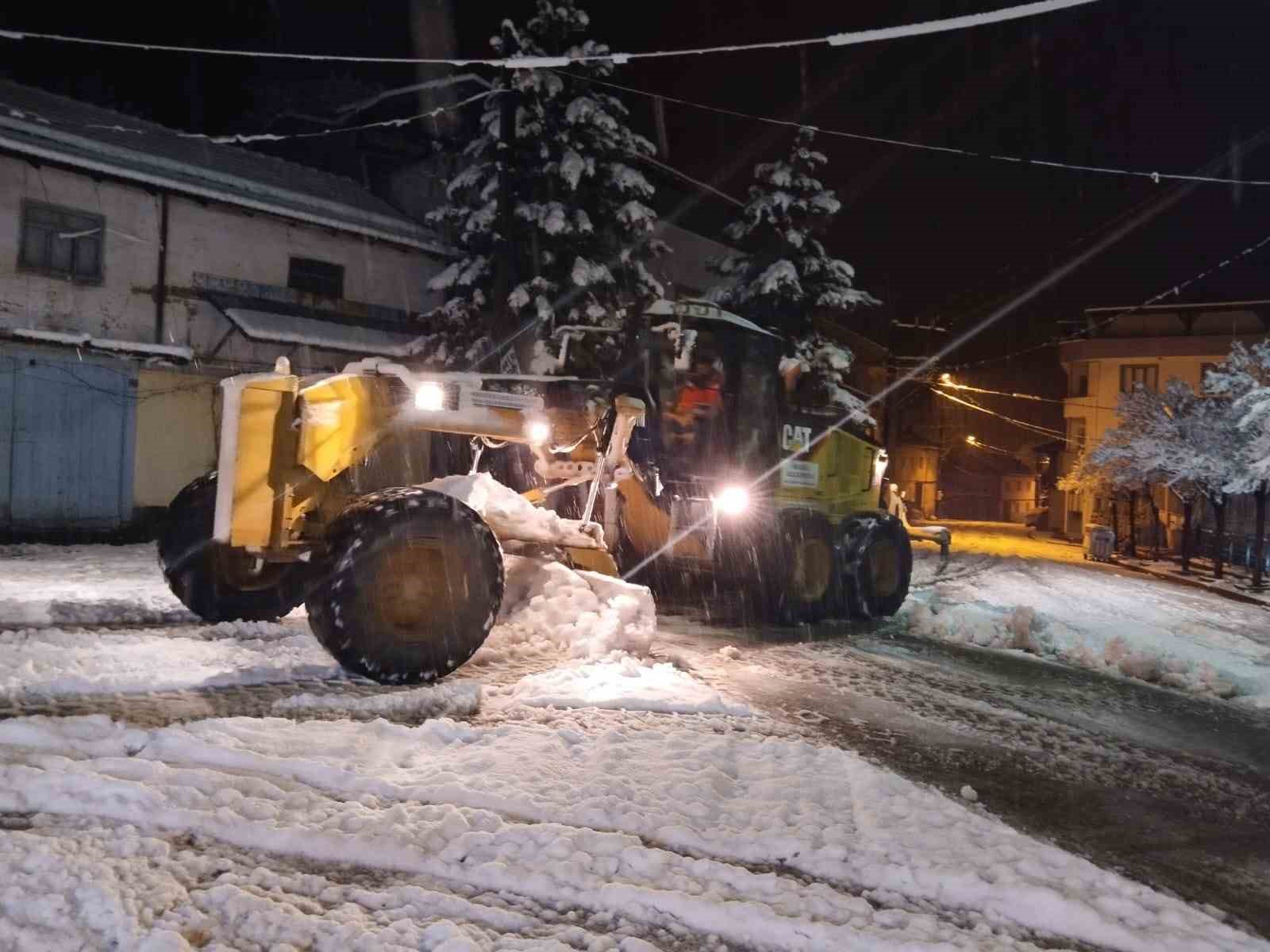 İnegöl’de beklenen kar yağışı dün gece başladı. Yüksek kesimlerde etkisi daha yüksek olan kar yağışının hayatı olumsuz etkilememesi adına İnegöl Belediyesi ekipleri de sahaya indi. Kırsal mahallelerde kar temizleme çalışmaları gece boyu aralıksız devam etti.
