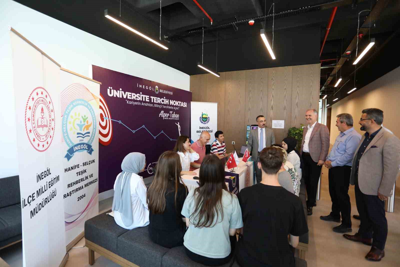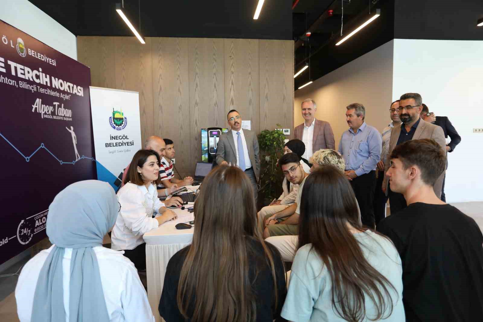 İnegöl Belediyesi, Yükseköğretim Kurumları Sınavı (YKS) tercih sürecinde üniversite adaylarına ücretsiz tercih danışmanlığı hizmetine devam eden ediyor. Kaymakam Eren Arslan ve Başkan Alper Taban da merkezleri ziyaret ederek gençlere moral depoladı.