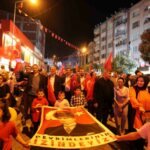 Büyük coşkunun yaşandığı cumhuriyet yürüyüşü sırasında Atatürk Bulvarı üzerindeki vatandaşlar da katılarak devam etti. Yol boyunca kaldırımlarda, evlerin cam ve balkonlarında vatandaşlar da alkışlarıyla destek verdi. Heykel önünde son bulan yürüyüşün ardından Belediye Başkanı Alper Taban ile Kaymakam Eren Arslan kısa birer selamlama konuşması gerçekleştirdi. Birlik beraberlik mesajlarının verildiği ve cumhuriyete vurgu yapılan konuşmalar sonrası saygı duruşunda bulunulup İstiklal Marşı hep bir ağızdan okunarak program sona erdi.