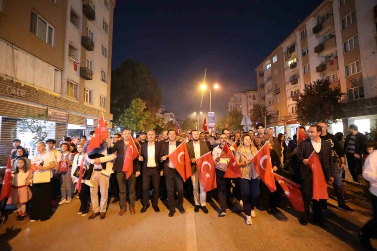 İnegöl’de binlerce vatandaşın katılımıyla gerçekleştirilen ’Cumhuriyet Yürüyüşü’ 100. yılında coşku caddelere sığmadı.
