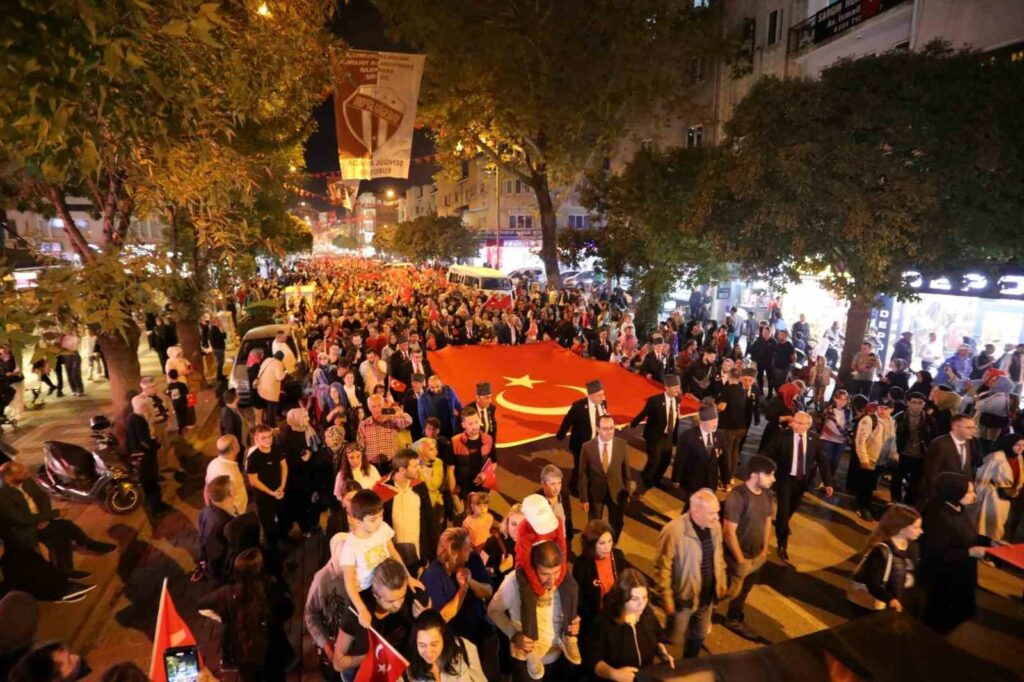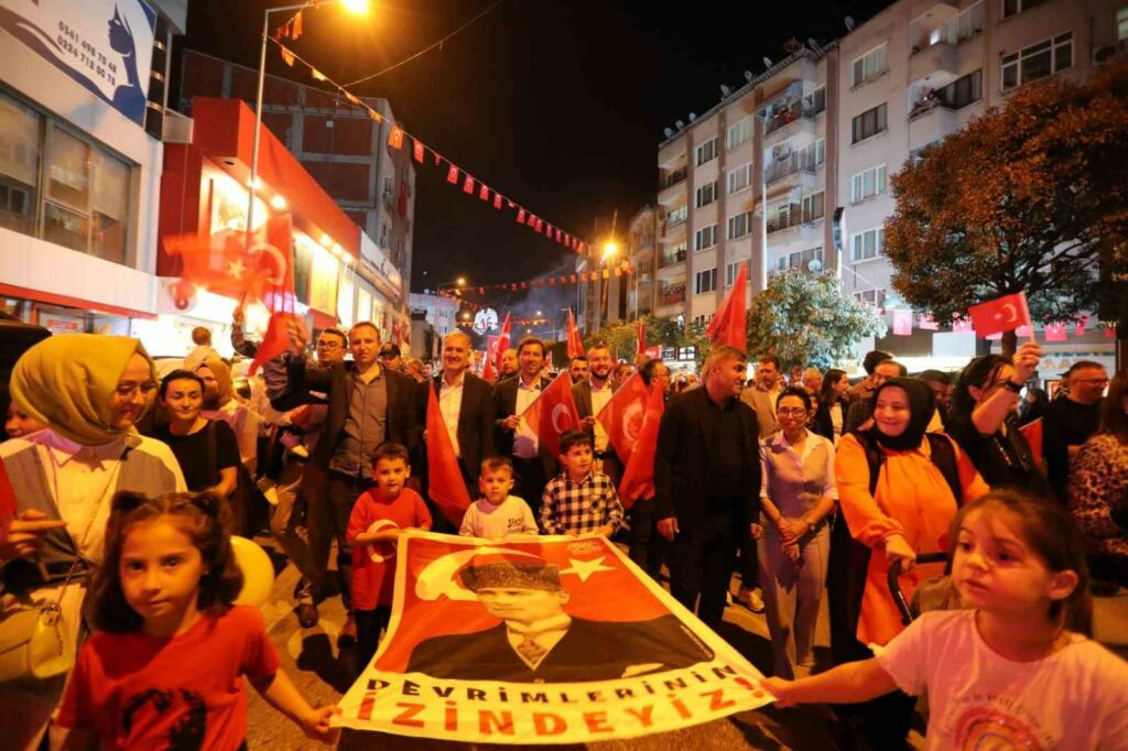 Büyük coşkunun yaşandığı cumhuriyet yürüyüşü sırasında Atatürk Bulvarı üzerindeki vatandaşlar da katılarak devam etti. Yol boyunca kaldırımlarda, evlerin cam ve balkonlarında vatandaşlar da alkışlarıyla destek verdi. Heykel önünde son bulan yürüyüşün ardından Belediye Başkanı Alper Taban ile Kaymakam Eren Arslan kısa birer selamlama konuşması gerçekleştirdi. Birlik beraberlik mesajlarının verildiği ve cumhuriyete vurgu yapılan konuşmalar sonrası saygı duruşunda bulunulup İstiklal Marşı hep bir ağızdan okunarak program sona erdi.