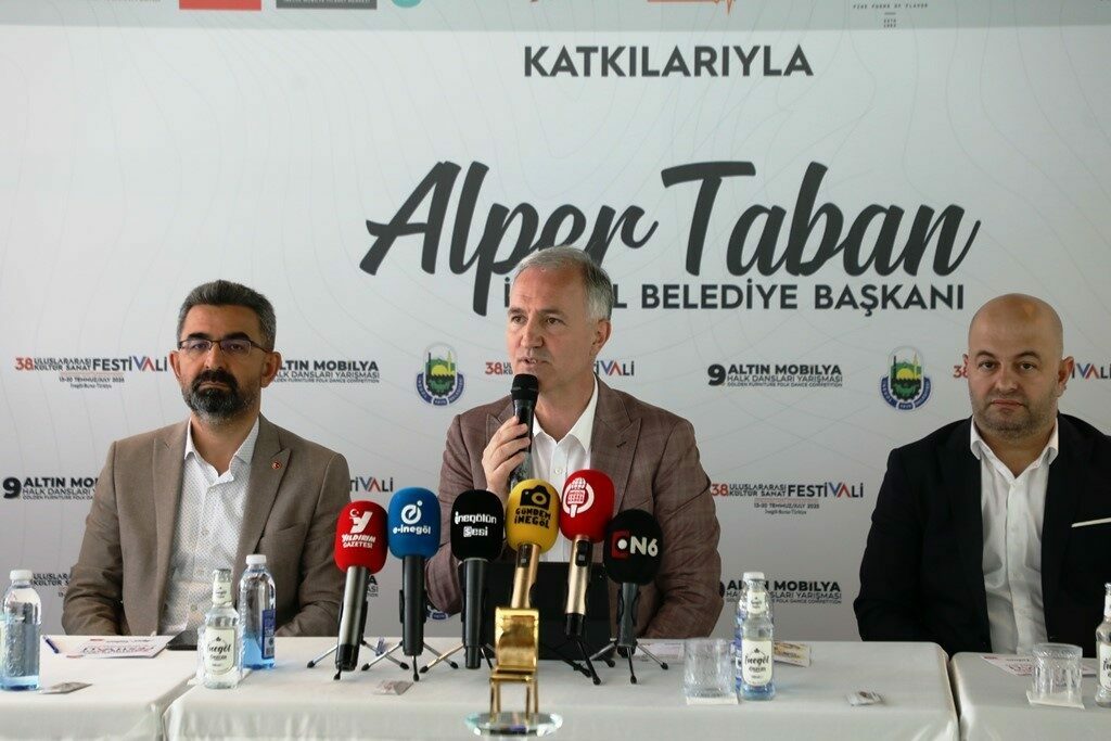 İnegöl’ün kültürel kimliğini güçlendirmeyi ve farklı kültürleri bir araya getirerek birlik ve beraberliği pekiştirmeyi amaçlayan 38.Uluslarararsı Kültür Sanat Festivali’nin tüm detaylarını İnegöl Belediye Başkanı Alper Taban Yeni Yaşam Alanı içerisinde yer alan Sergi Salonunda düzenlenen basın toplantısı ile paylaştı. Basın toplantısına; İnegöl Belediye Başkanı Alper Taban, İnegöl Belediyesi Kültür ve Sanat Komisyonu, İnegöl’de kültürlerini yaşatan derneklerin başkan ve yöneticileri katılım sağladı.