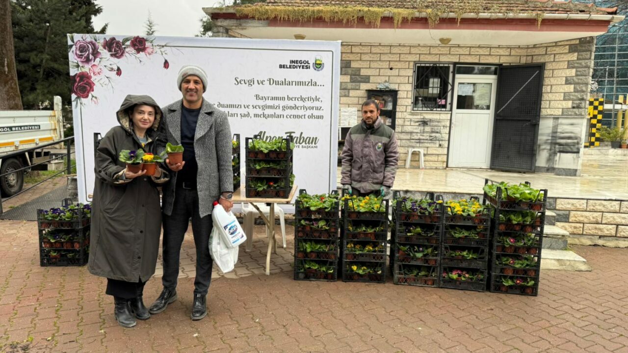 İnegöl Belediyesi, Ramazan Bayramı arifesinde mezarlık ziyaretine gelen vatandaşlara ücretsiz 9 bin adet çiçek dağıtarak anlamlı bir uygulamayı bu yıl da sürdürdü.