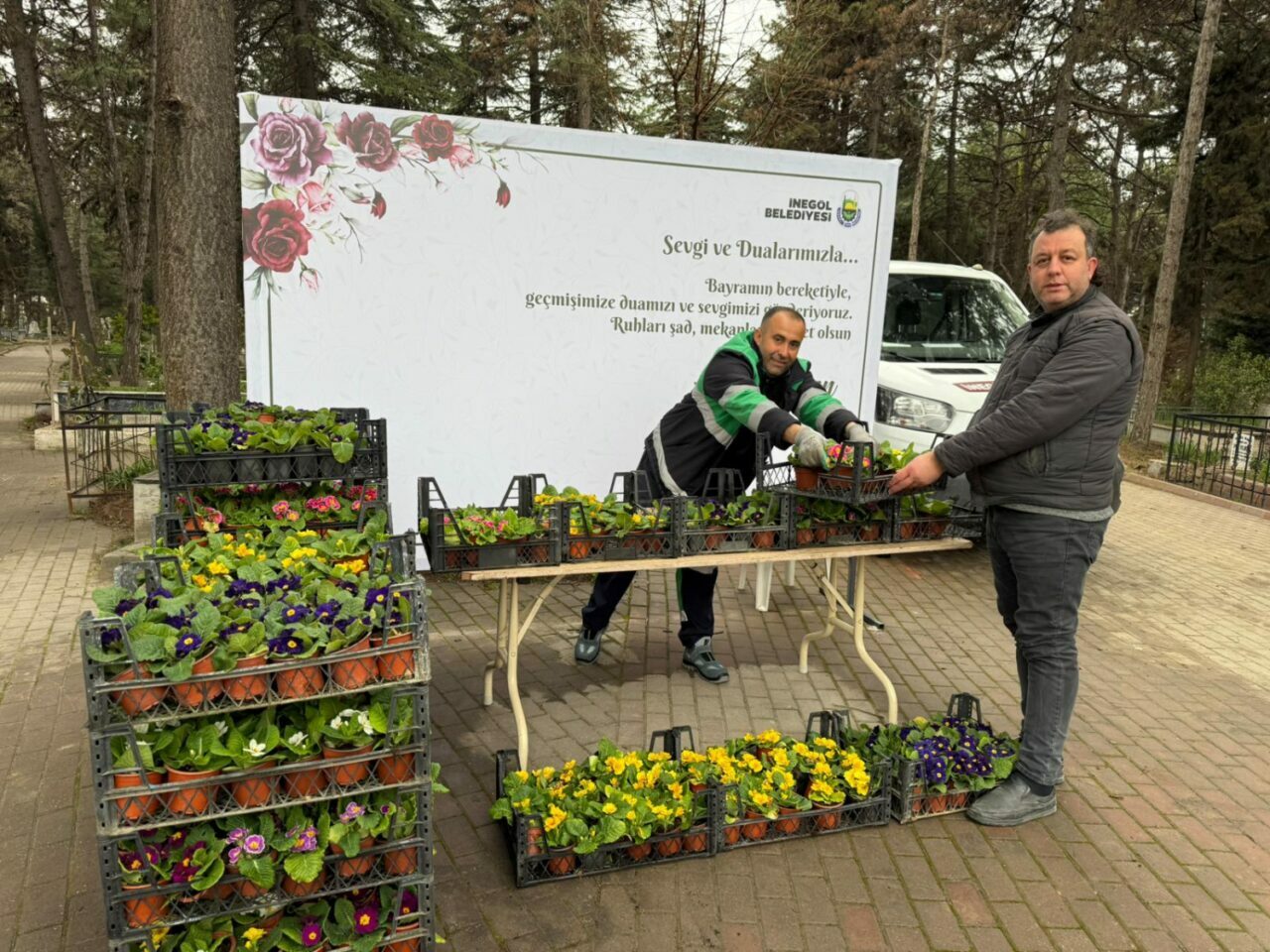 İnegöl Belediyesi Park Bahçeler Müdürlüğü ile Defin Hizmetleri Müdürlüğü’nün ortak çalışması kapsamında; İstanbullu Hasan, Kavaklaraltı, Hastane, Orhaniye, Mahmudiye 1 ve 2 ile Hamzabeyli Sadık Ağa Kent Mezarlığı’nda toplam 9 bin çiçek dağıtıldı. Mezarlıkları ziyaret eden vatandaşlar, aldıkları çiçekleri yakınlarının kabirlerine dikerek alanları adeta birer çiçek bahçesine dönüştürdü.