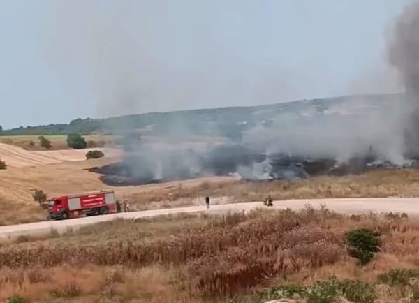Bursa’nın İnegöl ilçesinde ekili buğday tarlalarında yangın çıktı.