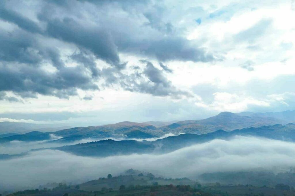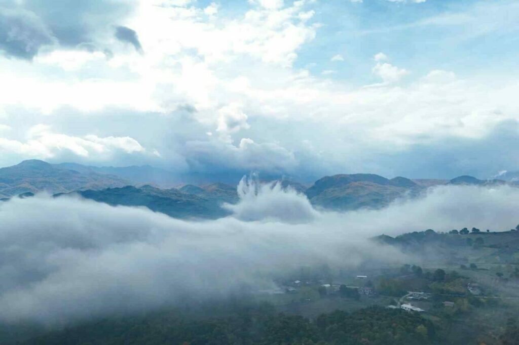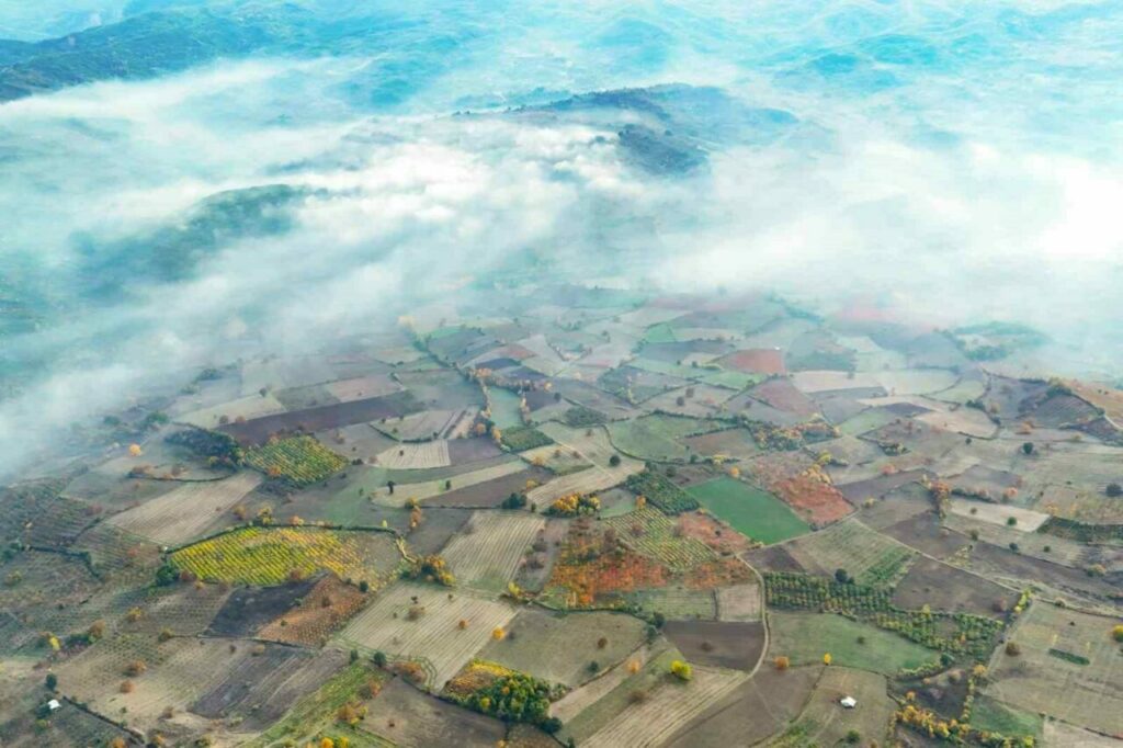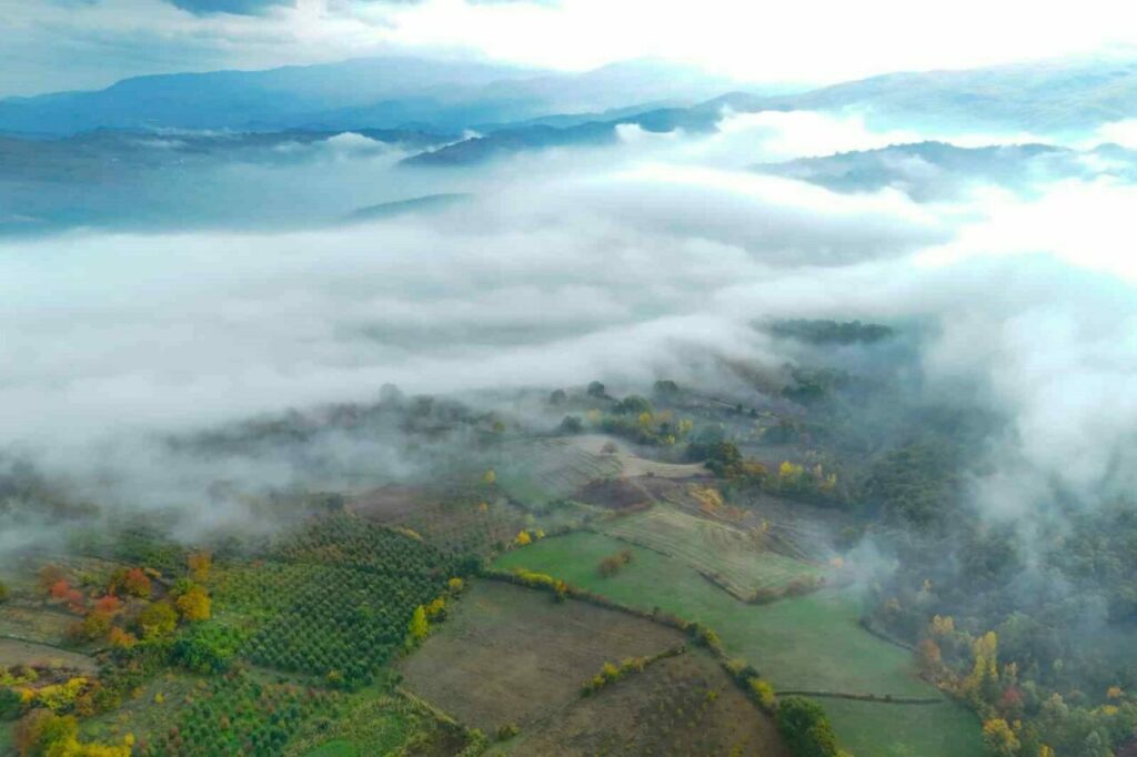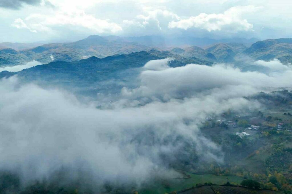 Yeşilin ve gri tonlarının iç içe geçtiği manzara, eşsiz bir görsel şölen oluştururken, bölgeye hakim atmosfer dron kamerasıyla ölümsüzleştirildi. Ödüllü Fotoğraf Sanatçısı Şaban Kılıçcı, bölgenin kartpostallık güzelliğini görüntüleyerek doğanın büyüleyici atmosferini izleyiciyle buluşturdu.