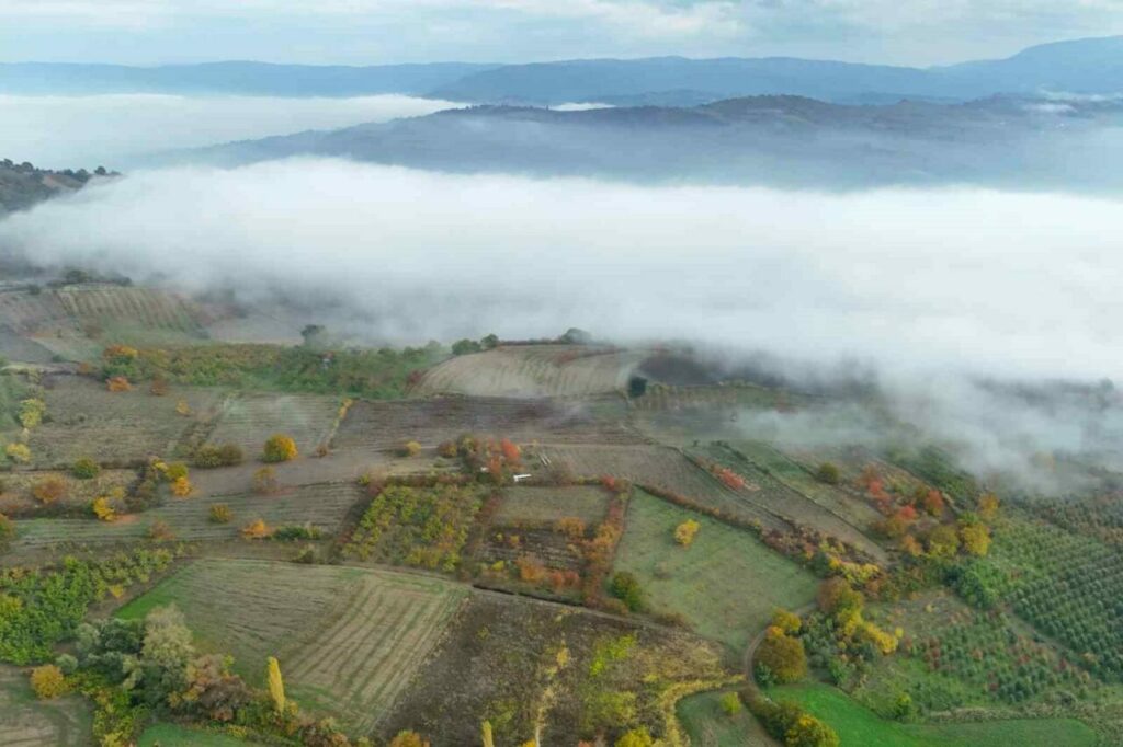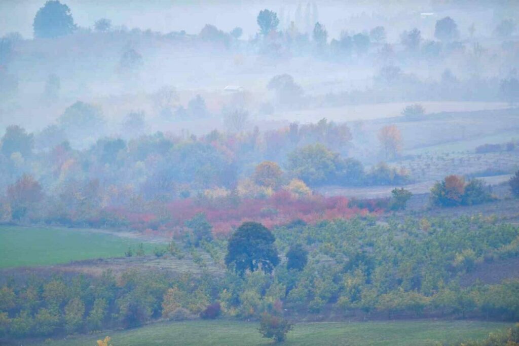 Bursa’nın İnegöl ilçesinde sonbaharın gelişiyle birlikte ortaya çıkan doğal güzellikler, görenleri büyüledi. Uludağ eteklerinde yer alan Maden Mahallesi’nin ormanlık alanları, yağmurun ardından çöken sisle birlikte adeta renk cümbüşüne sahne oldu.