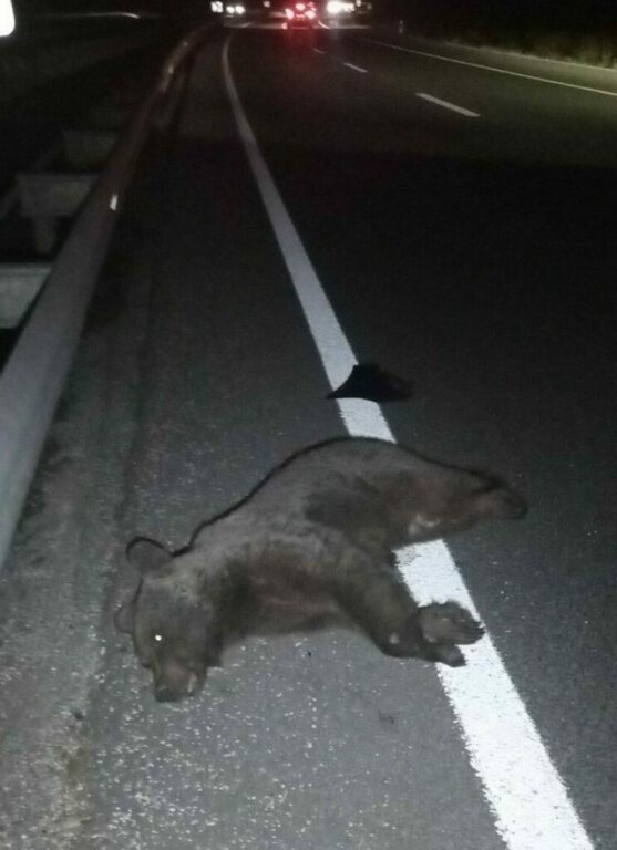 Bursa’nın İnegöl ilçesinde, otomobilin çarptığı yavru ayı telef oldu.