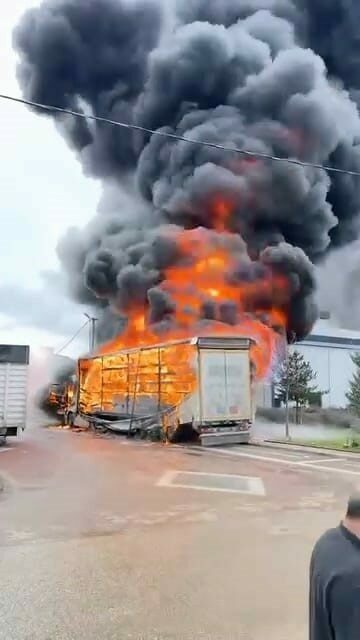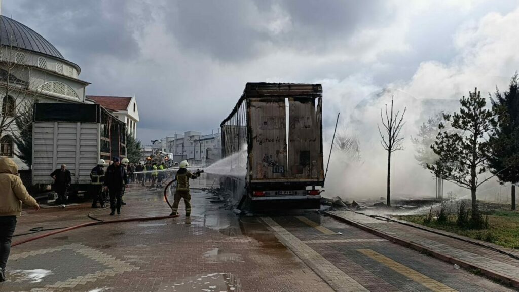 Bursa’nın İnegöl ilçesinde park halindeki sünger yüklü tır dorsesinde çıkan yangın, bitişiğinde bulunan mobilya yüklü başka bir dorsenin de yanmasına neden oldu. Yangında tır ve dorsesi kullanılamaz hale gelirken, diğer dorsede maddi hasar meydana geldi.
