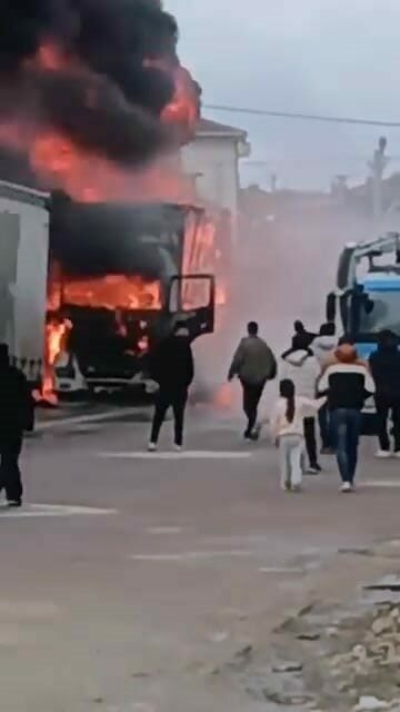 Yangın, saat 12.30 sıralarında Mesudiye Mahallesi Meydan Sokak üzerinde meydana geldi. Edinilen bilgiye göre, park halindeki 16 BRT 373 plakalı çekiciye bağlı 16 BPA 863 plakalı dorsede yüklü bulunan süngerler henüz bilinmeyen bir nedenle yanmaya başladı. Kısa sürede büyüyen alevler, hemen yanında park halinde bulunan mobilya yüklü 16 BDD 870 plakalı dorsenin de tutuşmasına neden oldu.