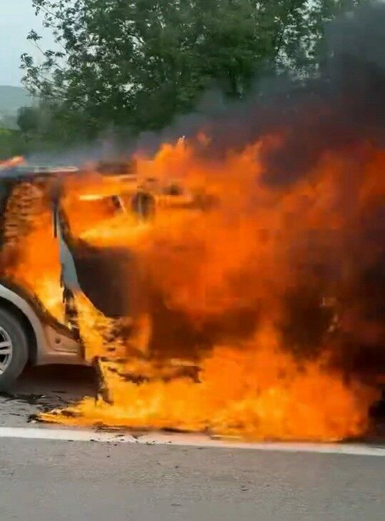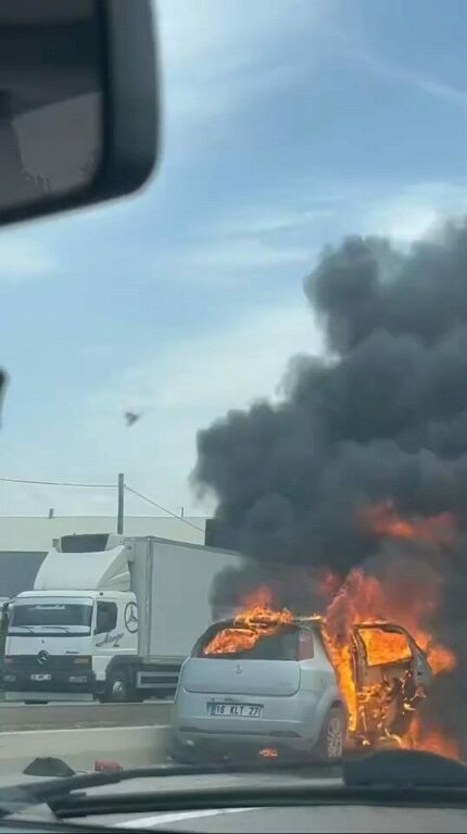 Bursa’nın İnegöl ilçesinde seyir halindeki otomobil alev alev yandı.