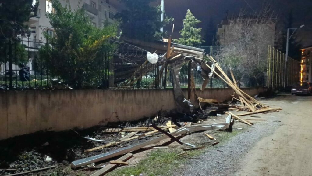Bursa’nın İnegöl ilçesinde etkili olan şiddetli lodos, iki ayrı sitede çatıların uçmasına neden oldu. Olaylarda can kaybı ya da yaralanma yaşanmazken, evler ve park halindeki araçlarda maddi hasar meydana geldi.