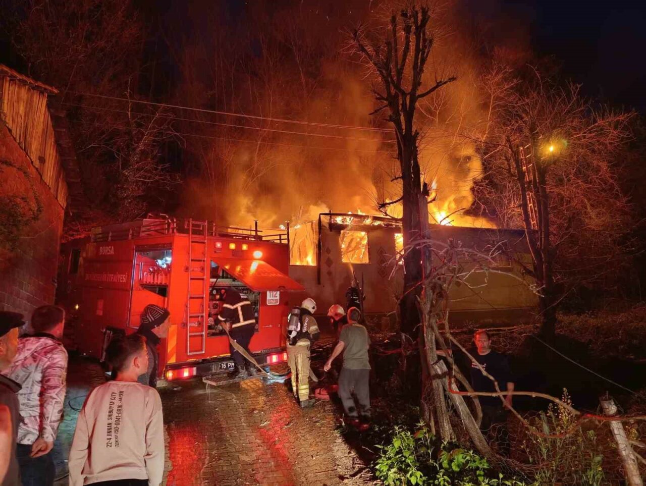 İnegöl’de tek katlı ev alev alev yandı