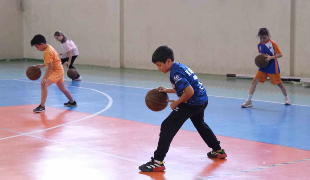 Başkan Taban yüzme kursunun ardından Belediye Spor Salonunda devam eden basketbol yaz spor okulu eğitimine de katılarak çocukların antrenmanlarını izledi.