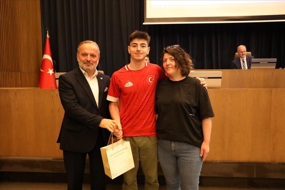 İnegöl’de sportif ve akademik başarılarıyla dikkat çeken 8 öğrenci, İnegöl Belediyesi meclisinde misafir edildi.