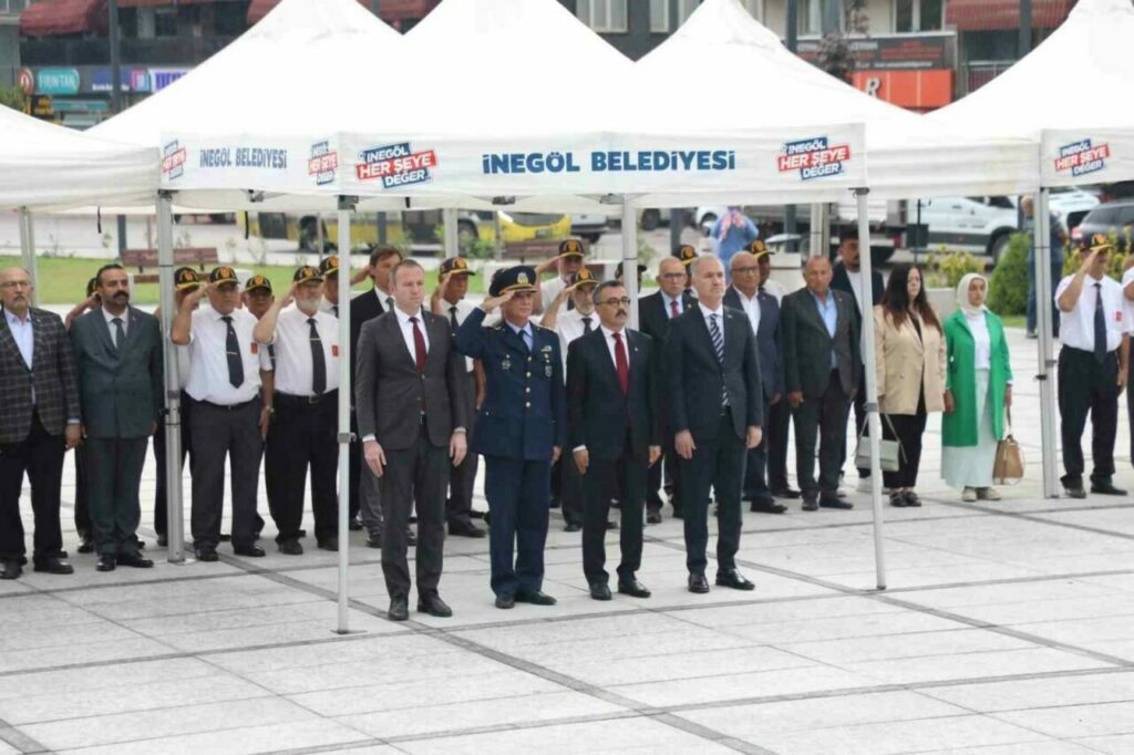 6 Eylül 1922’de düşman işgalinden kurtulan İnegöl, bu gururlu günün 103’üncü yıl dönümünü coşkuyla kutladı. Hafta boyunca “Zaferden Kurtuluşa” sloganıyla gerçekleştirilen etkinlikler kapsamında anma töreni ise 6 Eylül sabahı Atatürk Anıtı önünde düzenlendi. Saat 09.30’da başlayan törene Kaymakam Eren Arslan, Belediye Başkanı Alper Taban, siyasi parti ve STK temsilcileri, kurum amirleri ile çok sayıda vatandaş katıldı. Çelenklerin anıta bırakılmasının ardından saygı duruşunda bulunuldu ve İstiklal Marşı okundu.