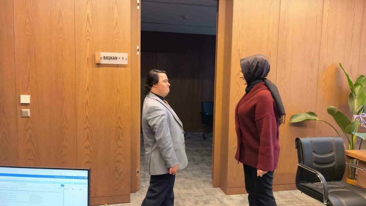 Bursa’nın İnegöl ilçesinde down sendromlu 29 yaşındaki Can Ahmet Haymana, 3 yıl önce belediyenin sosyal sorumluluk projesi kapsamında Belediye Başkanı Alper Taban’ın makamının yanında oluşturulan “Başkan +1” ofisinde görevler üstleniyor.