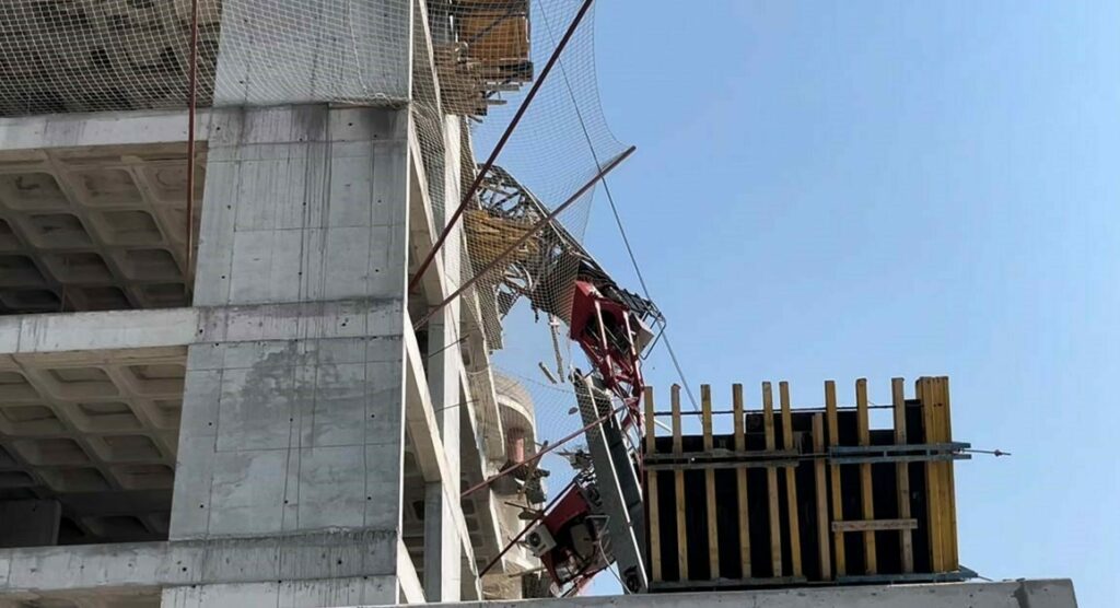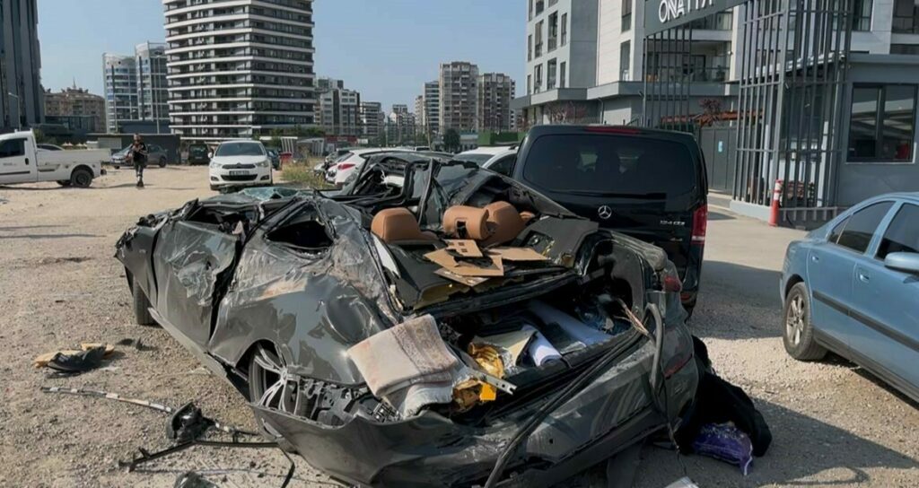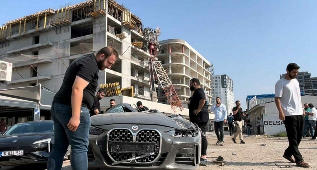 Bursa’da bir inşaat sahasında şantiye alanındaki yüksek tonajlı vinç, yola devrildi. Vincin devrilmesiyle birlikte kabin içinde bulunan operatör mahsur kalırken, yoldaki lüks araç hurda yığınına döndü.