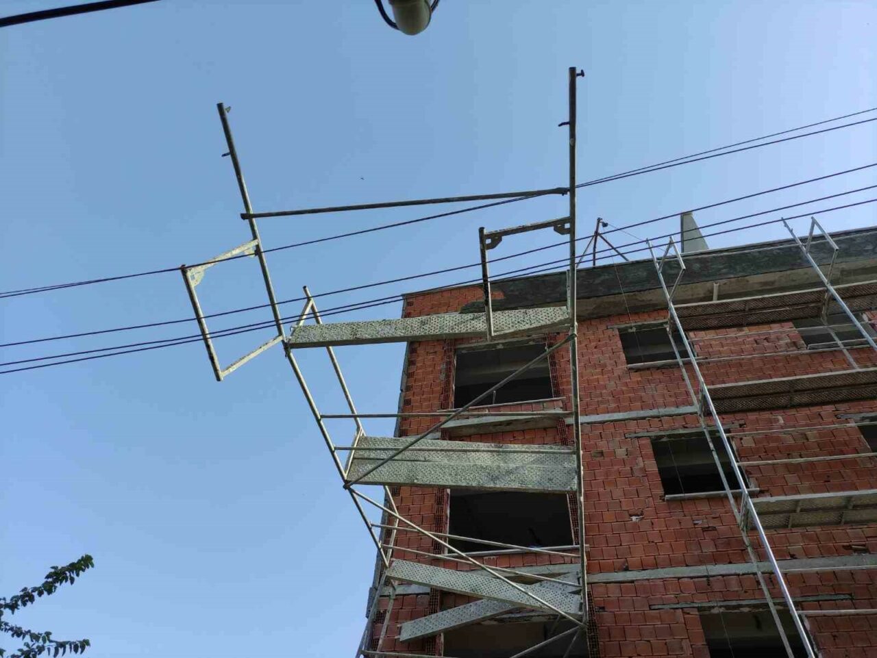 İnşaat iskelesi yüksek gerilim hattının üzerine devrildi: Son anda atlayıp kurtuldu