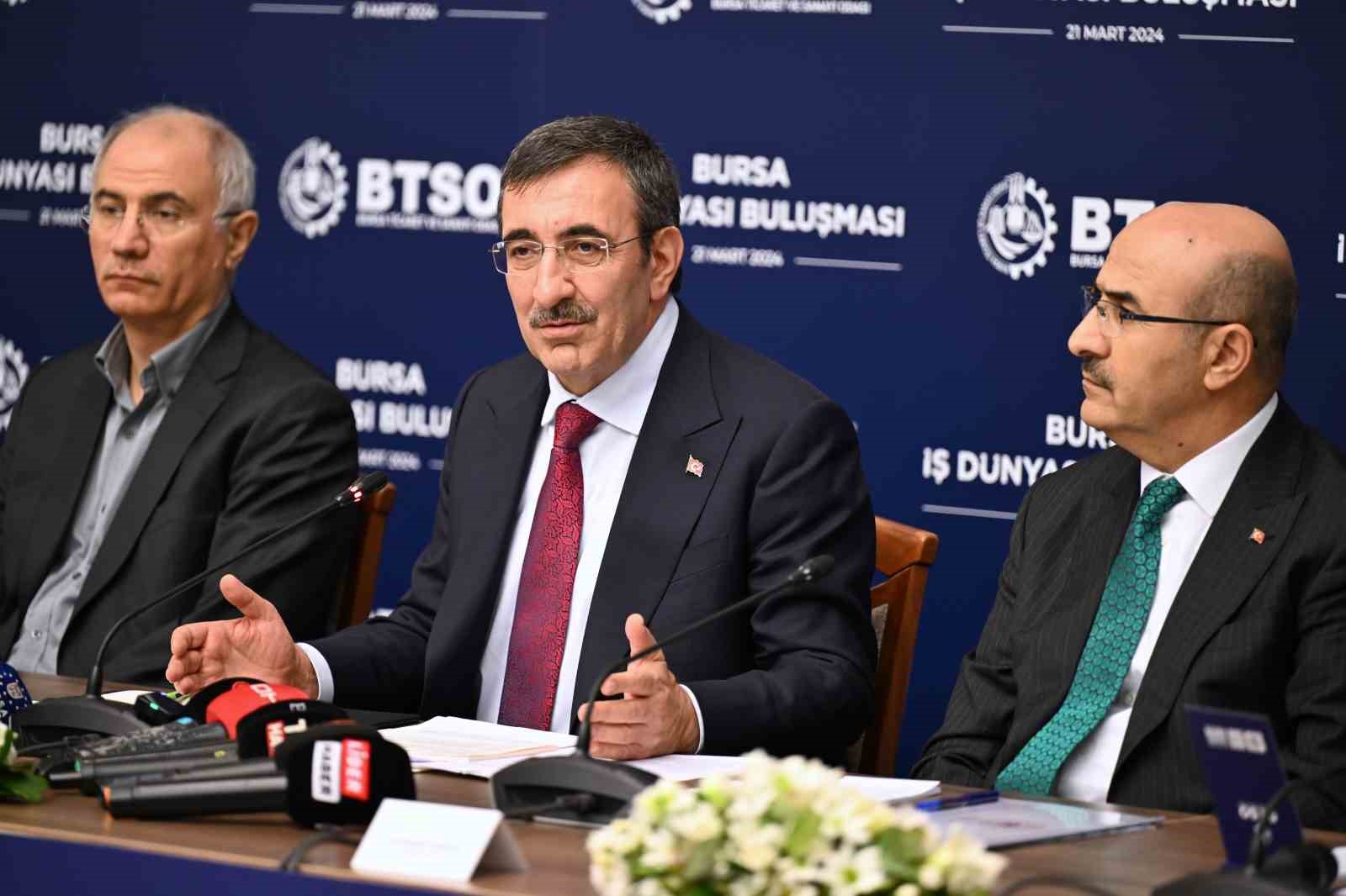 Bursa Ticaret ve Sanayi Odası (BTSO) ev sahipliğinde düzenlenen Bursa iş dünyası buluşmasına katılan Cumhurbaşkanı Yardımcısı Cevdet Yılmaz, BTSO ve Bursa Büyükşehir Belediyesi işbirliğinde kente kazandırılması planlanan KOBİ OSB projesinin merkezi idare, yerel yönetim ve iş dünyası işbirliğine çok güzel bir örnek olduğunu belirterek, “Bu projeyi yakından takip edeceğiz” dedi.