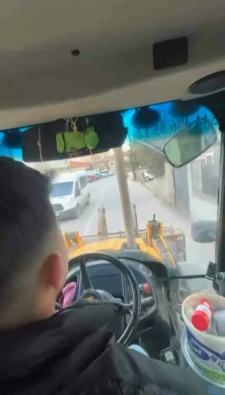 Bursa’da iddiaya göre ehliyeti olmayan bir genç, sokak aralarında iş makinesi sürdü. Bununla da yetinmeyen genç, tehlikeli anları kayda aldı.