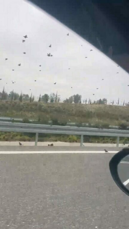 Bursa-İzmir otobanı üzerinde uçan yüzlerce sığırcık soğuk hava sebebiyle yol üzerine kondu. Seyir halindeki araçlar, yol üzerindeki sığırcıkları görüp yavaşladı. Tek şerit halinde yoldan yavaşça ilerleyen sürücüler o anları hayretle izledi. Yol üzerindeki sığırcıkların görüntüsü ise sosyal medyada binlerce kez izlendi.