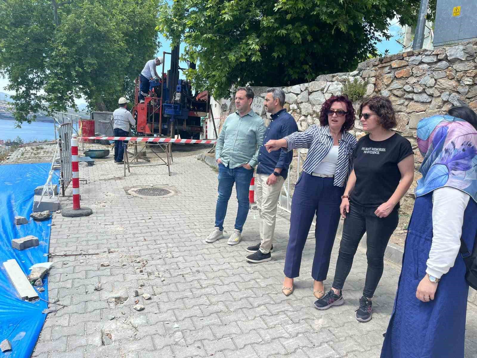 Bursa’nın Gemlik ilçesinde istinat duvarının çöktüğü Yenimahalle İsmet Armağan Sokak’ta hafriyat kaldırma ve toprak hareket ölçümü çalışmaları başladı. Gemlik Belediye Başkanı Şükrü Deviren ve Başkan Yardımcısı Arzu Karataş çalışmaları yerinde inceledi.