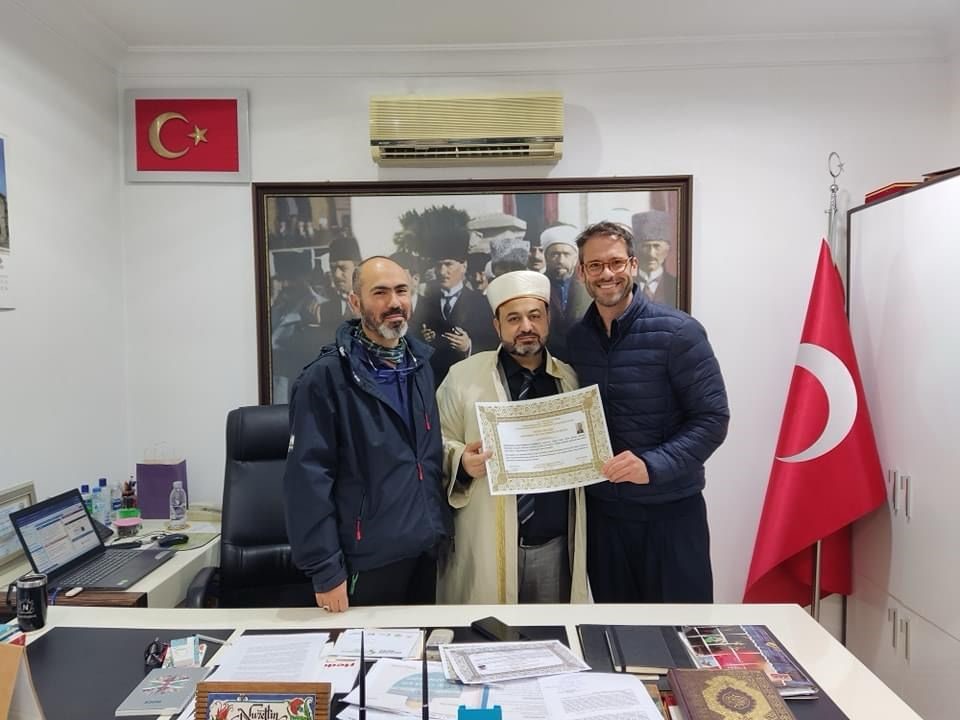 SALVATORE LA ROCCA İZNİK İLÇE MÜFTÜLÜĞÜ’NE YAPTIĞI BAŞVURUNUN ARDINDAN İLÇE MÜFTÜSÜ NURETTİN ÇELİK VE ŞAHİTLERİN HUZURUNDA, KELİME-İ ŞAHÂDET GETİREREK MÜSLÜMAN OLDU.