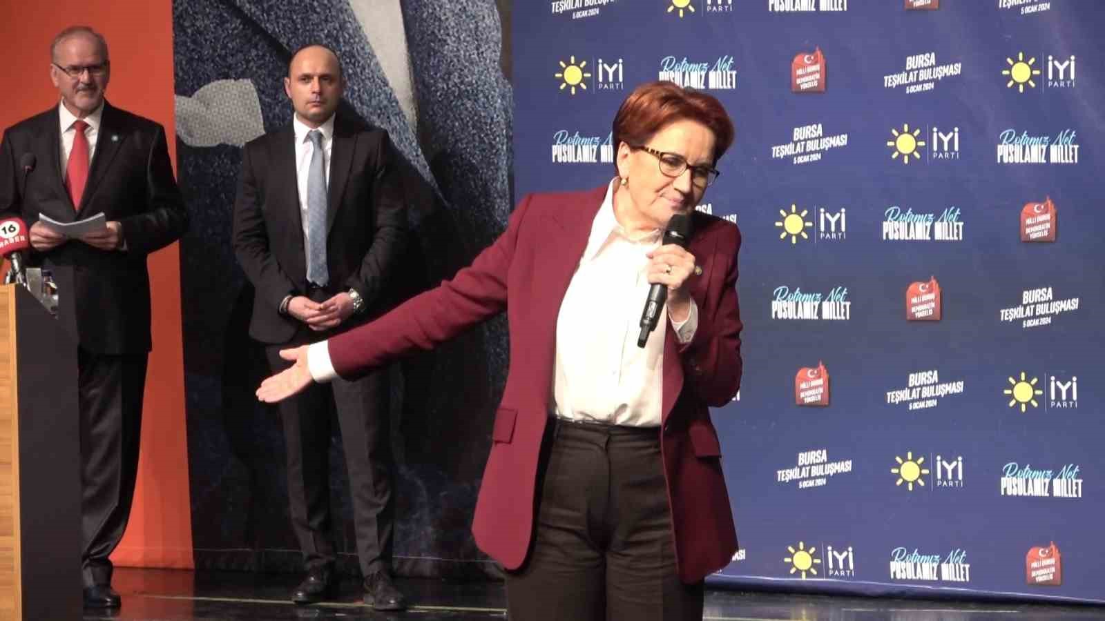 Seçime tek başına gireceklerini vurgulayan Meral Akşener, “Hadi bakalım muhteremler bize bir taraf diyordu ki ’PKK’lılarla el sıkışanların elini sıkıyorsunuz’ Bilumum elleri bıraktık. Şimdi dolayısıyla tek başımıza giriyoruz. Kimseyle el sıkışmadan, kimseye kötü bir söz söylemeden, kimseye hakaret etmeden, AK Parti’ye oy veren seçmen de başımızın üstünde. Cumhuriyet Halk Partisi’ne oy veren seçmen de başımızın üstünde. Biz o iki partiye de diğerlerine de oy verenlerin tamamının oylarına talibiz” dedi.