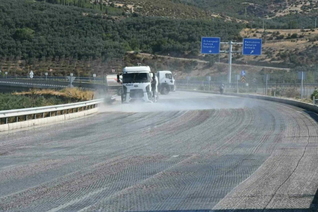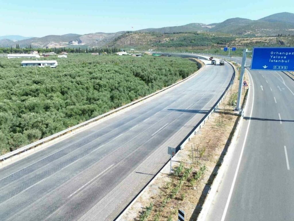 2025 yılı çalışmaları kapsamında ise yolun son tabakası olan bitümlü sıcak karışım aşınma kaplaması uygulanacak. Bu aşama, asfaltın zemine daha sağlam yapışması ve yol çizgilerinin kalıcı olması için büyük önem taşıyor. Çalışmaların güvenli yürütülebilmesi amacıyla trafik akışı, gerekli işaretlemeler yapılarak Elbeyli Kavşağı ile İznik Çıkış Kavşağı arasında İznik’in eski çevre yoluna aktarılmış durumda. Bölünmüş yolun sağ platformunda başlayan çalışmalarda, binder kaplama ile aşınma kaplama arasında aderansın sağlanabilmesi için yüzey pürüzlendirme ve temizlik işlemleri sürüyor.