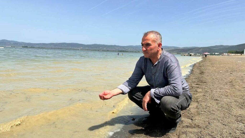 İznik gölü kıyısında plaj işletmesi bulunan Bekir Uslu, “tarihin ve doğanın başkenti İznik’ten yetkililere sesleniyorum. İznik gölü can çekişiyor. Fabrikaların aldığı su sonucu kuraklık hepsi üst üste gelince İznik’in can damarı İznik Gölü bu şekilde renkten renge girmeye başladı. Acil çözüm alınması gerekiyor. Temmuz ayında turkuaza bürünen göl, mayıs ayında çamura bulandı” dedi.