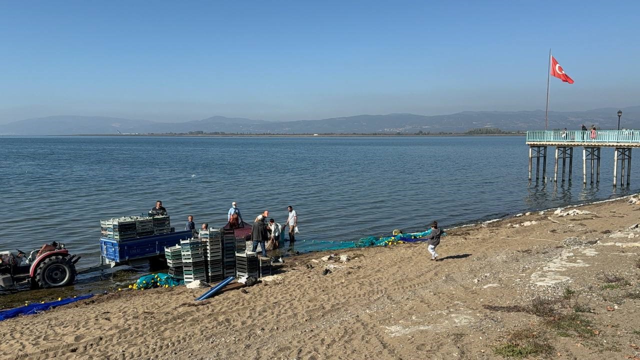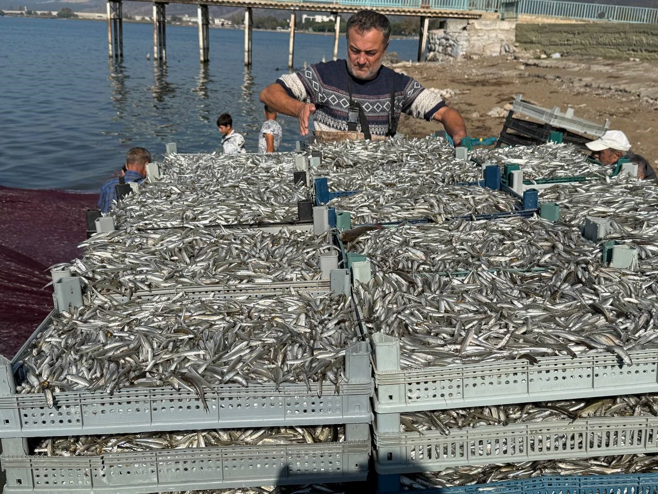 Son zamanlarda kuraklıktan etkilenen ve günden güne eriyen İznik Gölü’ne ağ atan balıkçılar, bir seferde tam 5 ton gümüş balığı avladı.
