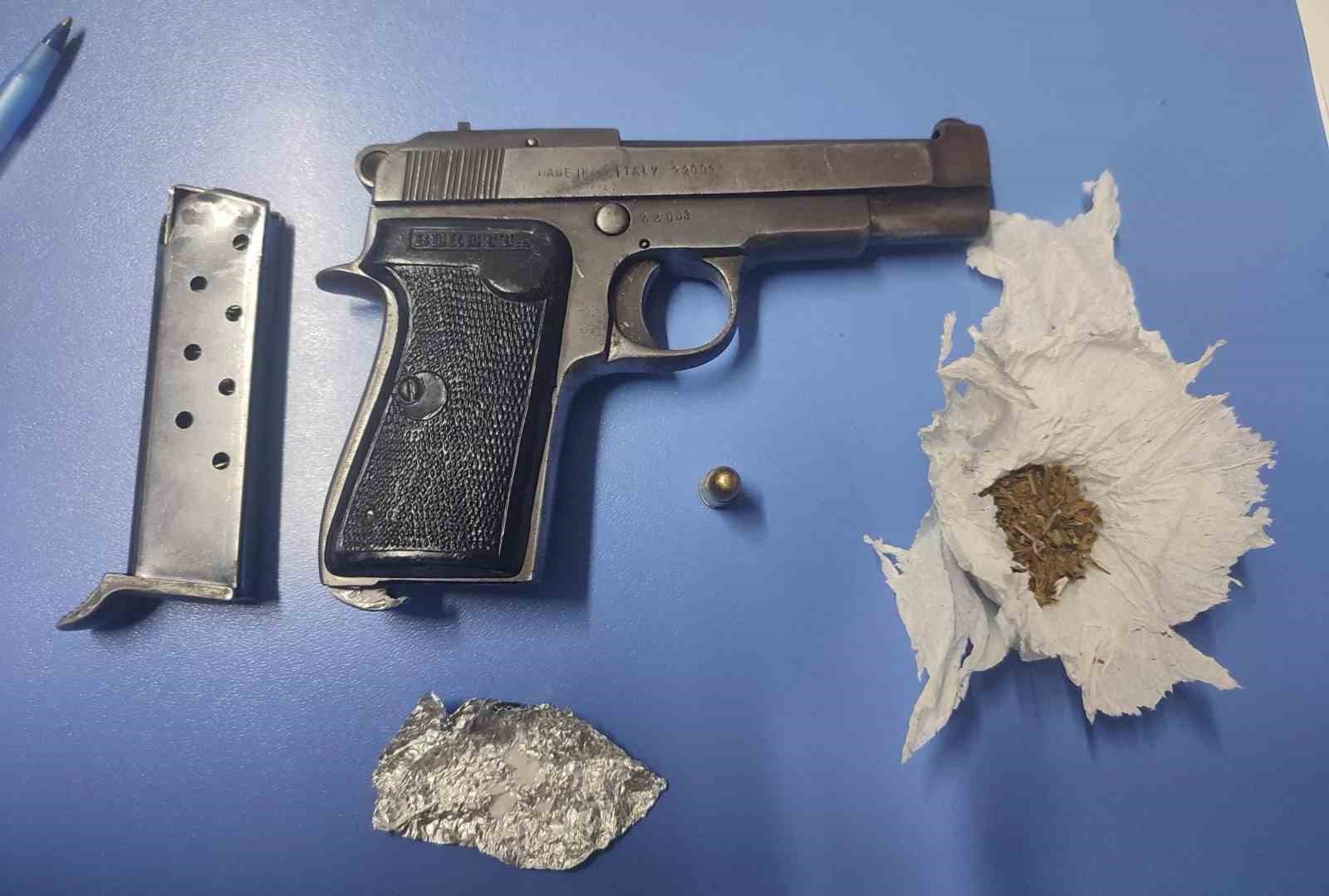 İznik İlçe Emniyet Müdürlüğü ekiplerince yapılan uygulamalarda 2 kilo 140 gram esrar, 13 gram Hint keneviri, 86 gram metamfetamin ile ruhsatsız silah ele geçirildi.