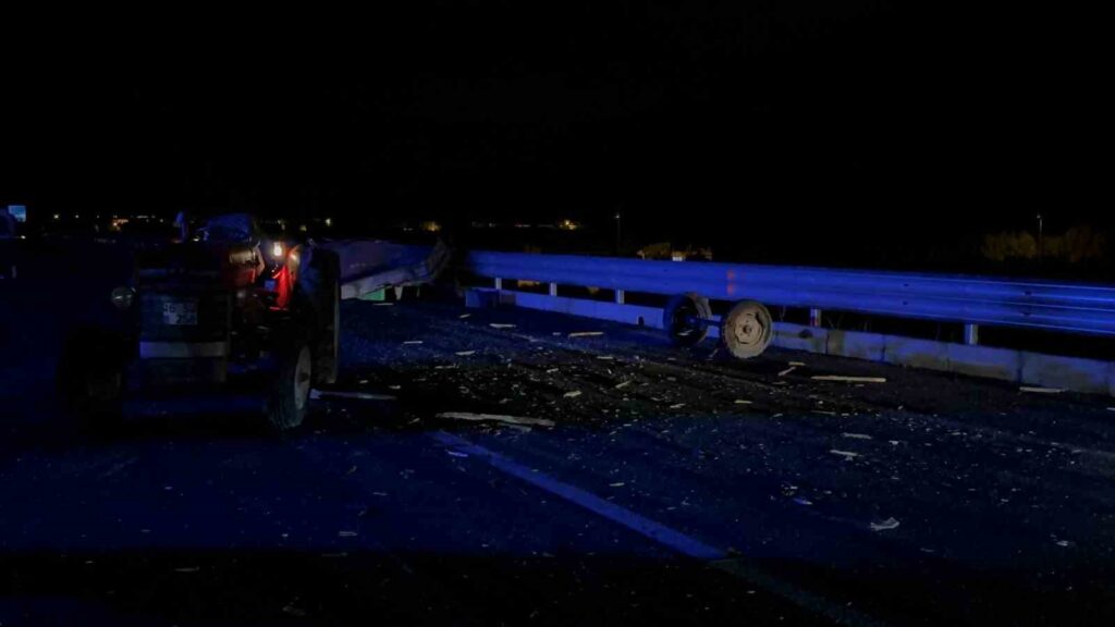 Bursa’nın İznik ilçesinde traktör ile çarpışan otomobilin metrelerce sürüklendiği kazada 1 kişi yaralandı. Çarpışmanın şiddetiyle traktörün römorkunda bulunan zeytinler yola saçıldı.