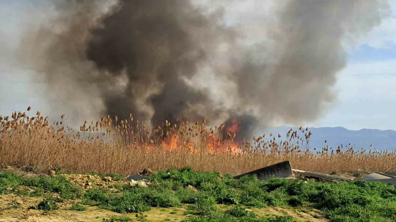 Bursa’nın İznik ilçesinde sazlık alanda çıkan ve rüzgarın etkisiyle büyüyen yangına ekiplerin müdahalesi sürüyor.