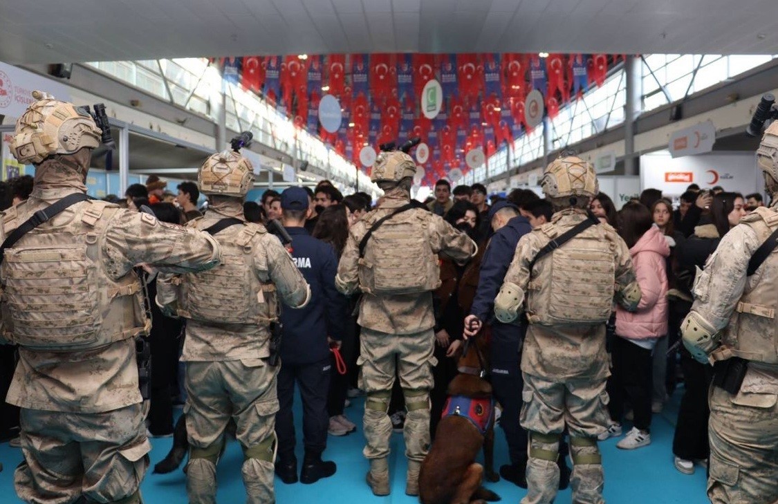 Cumhurbaşkanlığı İletişim Başkanlığı iştirakleriyle 7-8 Mart tarihlerinde Bursa’da düzenlenen Devlet Teşvikleri Tanıtım Günleri Fuarı’nın 1. günü ziyaretçilerin yoğun ilgisiyle doldu taştı. Bilhassa gençlerin yoğun ilgi gösterdiği fuara protokolden birçok isim de katılırken, fuar alanının girişinde yer alan jandarmaya ait zırhlı araçların ve motosiklet timlerinin yanı sıra standa yer alan “Saygı Nöbetçisi” Alpler, Jandarma Arama Kurtarma ekipleri, Jandarma Özel Harekat personellerinin yanı sıra kadın jandarmalar da ziyaretçilerin dikkatini çekti. Fuar yarın 17.00’a kadar ziyarete açık olacak.