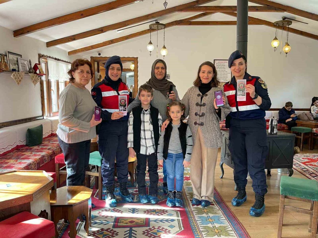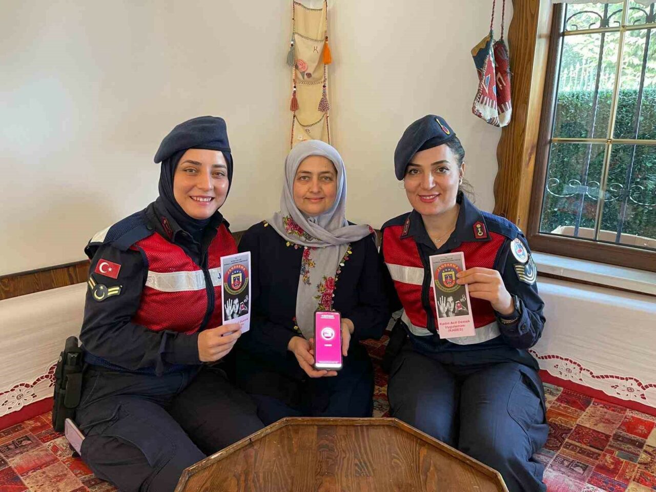 Bursa İl Jandarma Komutanlığı personelleri KADES ile şiddete ’dur’ diyerek vatandaşları bilgilendirdi.