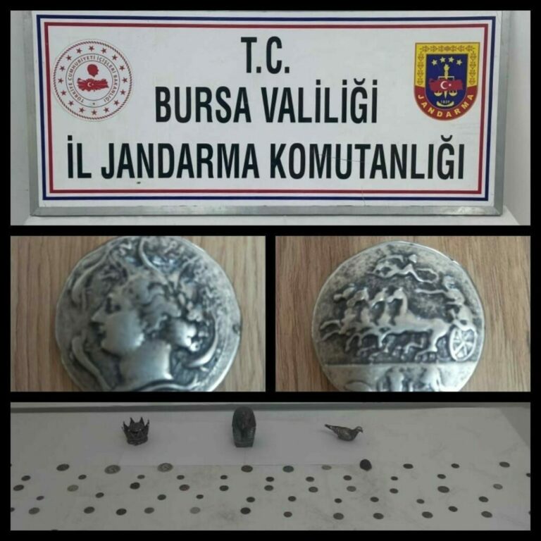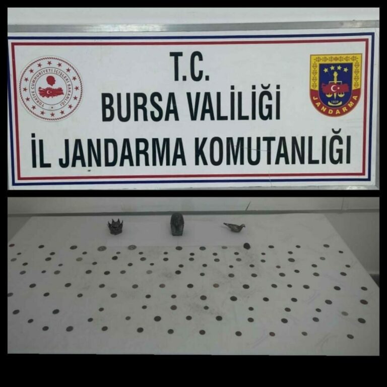 Bursa İl Jandarma Komutanlığı İstihbarat Şube Müdürlüğü ve Mudanya Bademli Jandarma Karakol Komutanlığı ekipleri, Mudanya ilçesine satılmak üzere tarihi eser getirildiği istihbaratına ulaştı. Ekipler, 2 şüphelilerin kullandığı motosikleti Mudanya ilçesi girişinde önünü keserek durdurdu. Şahısların üzerlerinde yapılan aramada antik döneme ait 125 adet sikke ve 3 adet obje ele geçirildi.