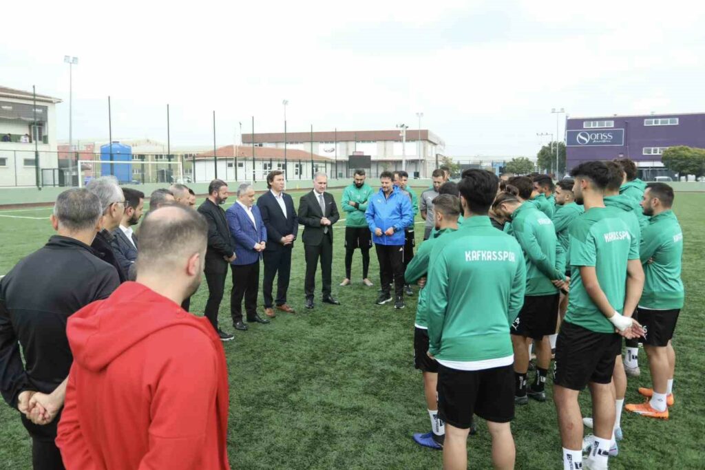 AK Parti Bursa Milletvekili Ayhan Salman, Belediye Başkanı Alper Taban ve AK Parti İlçe Başkanı Mustafa Durmuş, TFF 3. Lig 1. Grupta hafta sonu Talasgücü Belediyespor’u konuk edecek Kafkasspor’u antrenmanda ziyaret ederek başarılar diledi.